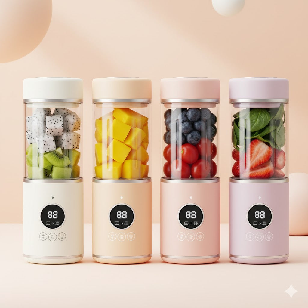 Discover the perfect balance of style and function with our portable blenders. From dragon fruit to spinach, mix your favorite ingredients anytime, anywhere. Designed for your daily health routine — sleek, smart, and full of color, just like your lifestyle.