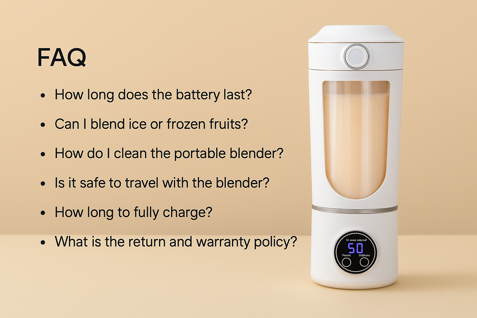 Stay charged and ready with smart USB connectivity. Our portable blender recharges quickly so you can blend on the go — from home to office to gym. Designed for convenience, it keeps your healthy routine powered wherever life takes you.